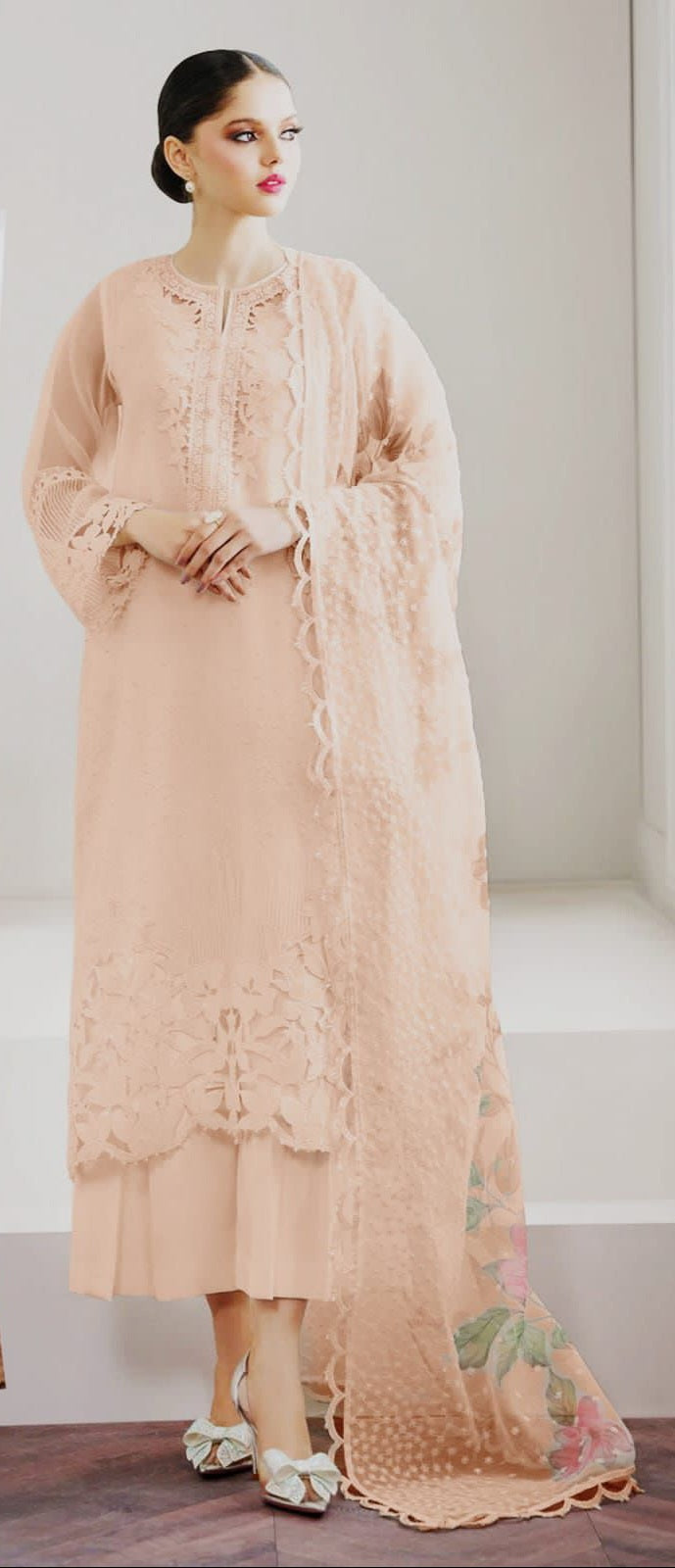 Luxury Organza Embroidered 3PC | Heavy Cutwork Dupatta | Silk Trouser|BR05